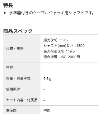 購入前のお見積書発行OK! 領収書発行・請求書事前発行のご用命も承ります "お問合せ"からお申込み下さい PROツール・ものづくりの総合商社 かんだ!TOP 切削機器・研磨機育良精機ケーブルジャッキケーブルジャッキ オプション 育良精機 ケーブルジャッキ ISG-2000用 シャフト 12033 定価: ¥37,950(税込) 価格: ¥24,660 (税込) [ポイント還元 246ポイント~] 販売期間: 数量: 台 在庫 在庫あり 返品についての詳細はこちら
