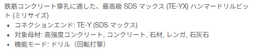 購入前のお見積書発行OK! 領収書発行・請求書事前発行のご用命も承ります "お問合せ"からお申込み下さい PROツール・ものづくりの総合商社 かんだ!TOP 切削機器・研磨機HILTI(ヒルティ)ビット・先端工具 HILTI ヒルティ TE-YX (SDS マックス) ミリサイズ ハンマードリルビット TE-YX 15/52 2179072 定価: ¥16,940(税込) 価格: ¥15,420 (税込) [ポイント還元 154ポイント~] 販売期間: 数量: 個 在庫 在庫あり 返品についての詳細はこちら