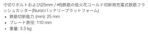 購入前のお見積書発行OK! 領収書発行・請求書事前発行のご用命も承ります "お問合せ"からお申込み下さい PROツール・ものづくりの総合商社 かんだ!TOP 切削機器・研磨機HILTI(ヒルティ)鉄筋カッターNURON NRC 6-22 HILTI ヒルティ NURON コードレス 鉄筋カッター NRC 6-22 ケース 2404224 定価: ¥190,300(税込) 価格: ¥156,090 (税込) [ポイント還元 1,560ポイント~] 販売期間: 数量: 個 在庫 在庫あり 返品についての詳細はこちら