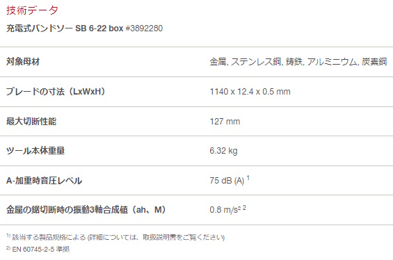充電式バンドソー SB 6-22 box ※バッテリーは付属しません。