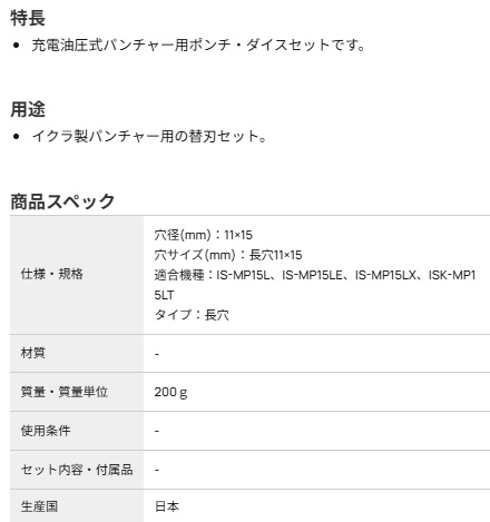 購入前のお見積書発行OK! 領収書発行・請求書事前発行のご用命も承ります "お問合せ"からお申込み下さい PROツール・ものづくりの総合商社 かんだ!TOP 切削機器・研磨機育良精機電動油圧式パンチャー電動油圧式パンチャー 替刃IS-MP15L 替刃 育良精機 コードレスパンチャー替刃 長穴 IS-MP15L替刃 SL11×15B 51723 定価: ¥23,650(税込) 価格: ¥15,370 (税込) [ポイント還元 153ポイント~] 販売期間: 数量: 台 在庫 在庫あり 返品についての詳細はこちら