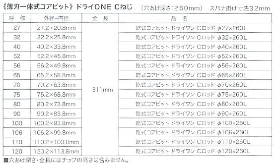 購入前のお見積書発行OK! 領収書発行・請求書事前発行のご用命も承ります "お問合せ"からお申込み下さい PROツール・ものづくりの総合商社 かんだ!TOP 切削機器・研磨機コンセック (CONSEC)ダイヤモンドコアビットSPJ用乾式コアビット DRY ONE Cロッドねじ コンセック 乾式コアビット ドライワン Cロッド 定価: ¥20,570(税込) ~ ¥58,520(税込) 価格: ¥13,010 (税込) ~ ¥37,010 (税込) [ポイント還元 130ポイント~] 販売期間: サイズ: 選択してください ドライワン Cロッド φ27x260L ドライワン Cロッド φ32x260L ドライワン Cロッド φ40x260L ドライワン Cロッド φ52x260L ドライワン Cロッド φ56x260L ドライワン Cロッド φ65x260L ドライワン Cロッド φ70x260L ドライワン Cロッド φ75x260L ドライワン Cロッド φ80x260L ドライワン Cロッド φ90x260L ドライワン Cロッド φ100x260L ドライワン Cロッド φ106x260L ドライワン Cロッド φ110x260L ドライワン Cロッド φ120x260L 定価: - 価格: - 数量: 個 サイズ定価価格在庫ドライワン Cロッド φ27x260L¥20,570(税込)¥13,010(税込)在庫ありドライワン Cロッド φ32x260L¥22,000(税込)¥13,910(税込)在庫ありドライワン Cロッド φ40x260L¥24,970(税込)¥15,790(税込)在庫ありドライワン Cロッド φ52x260L¥27,830(税込)¥17,600(税込)在庫ありドライワン Cロッド φ56x260L¥30,910(税込)¥19,550(税込)在庫ありドライワン Cロッド φ65x260L¥33,880(税込)¥21,420(税込)在庫ありドライワン Cロッド φ70x260L¥36,630(税込)¥23,160(税込)在庫ありドライワン Cロッド φ75x260L¥39,600(税込)¥25,040(税込)在庫ありドライワン Cロッド φ80x260L¥42,350(税込)¥26,780(税込)在庫ありドライワン Cロッド φ90x260L¥46,970(税込)¥29,700(税込)在庫ありドライワン Cロッド φ100x260L¥49,830(税込)¥31,510(税込)在庫ありドライワン Cロッド φ106x260L¥51,260(税込)¥32,420(税込)在庫ありドライワン Cロッド φ110x260L¥54,230(税込)¥34,300(税込)在庫ありドライワン Cロッド φ120x260L¥58,520(税込)¥37,010(税込)在庫あり 返品についての詳細はこちら