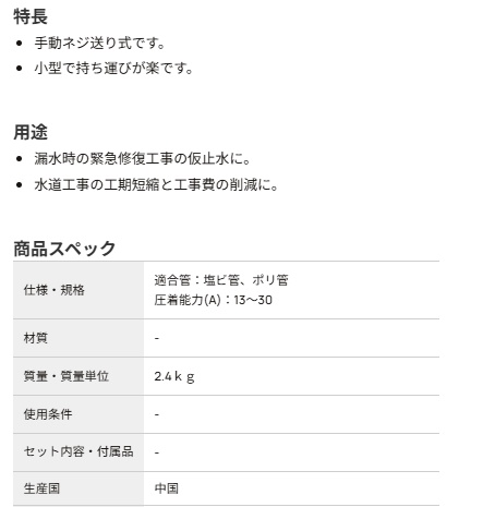 購入前のお見積書発行OK! 領収書発行・請求書事前発行のご用命も承ります "お問合せ"からお申込み下さい PROツール・ものづくりの総合商社 かんだ!TOP 切削機器・研磨機育良精機パイプ切断機 育良精機 手動ネジ送り式パイプ断水機 ISK-30AMII 定価: ¥29,040(税込) 価格: ¥18,870 (税込) [ポイント還元 188ポイント~] 販売期間: 数量: 台 在庫 在庫あり 返品についての詳細はこちら
