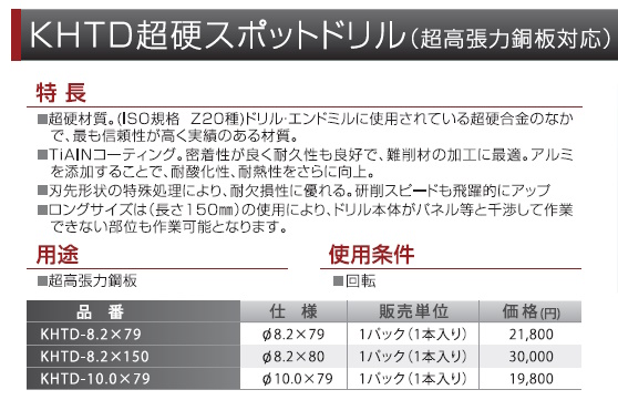 購入前のお見積書発行OK! 領収書発行・請求書事前発行のご用命も承ります "お問合せ"からお申込み下さい PROツール・ものづくりの総合商社 かんだ!TOP 切削機器・研磨機KIドリルドリルKHTD超硬スポットドリル KIドリル KHTD超硬スポットドリル 定価: ¥21,780(税込) ~ ¥33,000(税込) 価格: ¥14,150 (税込) ~ ¥21,450 (税込) [ポイント還元 141ポイント~] 販売期間: 品番: 選択してください KHTD超硬スポットドリル KHTD-8.2x79 KHTD超硬スポットドリル KHTD-8.2x150 KHTD超硬スポットドリル KHTD-10.0x79 定価: - 価格: - 数量: 個 品番定価価格在庫KHTD超硬スポットドリル KHTD-8.2x79¥23,980(税込)¥15,580(税込)在庫ありKHTD超硬スポットドリル KHTD-8.2x150¥33,000(税込)¥21,450(税込)在庫ありKHTD超硬スポットドリル KHTD-10.0x79¥21,780(税込)¥14,150(税込)在庫あり 返品についての詳細はこちら