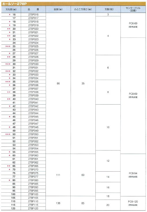 購入前のお見積書発行OK! 領収書発行・請求書事前発行のご用命も承ります "お問合せ"からお申込み下さい PROツール・ものづくりの総合商社 かんだ!TOP 切削機器・研磨機ミヤナガホールソーホールソー278Pホールソー278 ミヤナガ ホールソー278P 定価: ¥8,140(税込) ~ ¥67,540(税込) 価格: ¥4,590 (税込) ~ ¥38,160 (税込) [ポイント還元 45ポイント~] 販売期間: サイズ・品番: 選択してください 16mm:#278P016:ホールソー278P 17mm:#278P017:ホールソー278P 18mm:#278P018:ホールソー278P 19mm:#278P019:ホールソー278P 20mm:#278P020:ホールソー278P 21mm:#278P021:ホールソー278P 22mm:#278P022:ホールソー278P 23mm:#278P023:ホールソー278P 24mm:#278P024:ホールソー278P 25mm:#278P025:ホールソー278P 26mm:#278P026:ホールソー278P 27mm:#278P027:ホールソー278P 28mm:#278P028:ホールソー278P 29mm:#278P029:ホールソー278P 30mm:#278P030:ホールソー278P 31mm:#278P031:ホールソー278P 32mm:#278P032:ホールソー278P 33mm:#278P033:ホールソー278P 34mm:#278P034:ホールソー278P 35mm:#278P035:ホールソー278P 36mm:#278P036:ホールソー278P 37mm:#278P037:ホールソー278P 38mm:#278P038:ホールソー278P 39mm:#278P039:ホールソー278P 40mm:#278P040:ホールソー278P 41mm:#278P041:ホールソー278P 42mm:#278P042:ホールソー278P 43mm:#278P043:ホールソー278P 44mm:#278P044:ホールソー278P 45mm:#278P045:ホールソー278P 46mm:#278P046:ホールソー278P 47mm:#278P047:ホールソー278P 48mm:#278P048:ホールソー278P 49mm:#278P049:ホールソー278P 50mm:#278P050:ホールソー278P 51mm:#278P051:ホールソー278P 52mm:#278P052:ホールソー278P 53mm:#278P053:ホールソー278P 54mm:#278P054:ホールソー278P 55mm:#278P055:ホールソー278P 60mm:#278P060:ホールソー278P 61mm:#278P061:ホールソー278P 62mm:#278P062:ホールソー278P 65mm:#278P065:ホールソー278P 77mm:#278P077:ホールソー278P 80mm:#278P080:ホールソー278P 70mm:#278P070:ホールソー278P 75mm:#278P075:ホールソー278P 85mm:#278P085:ホールソー278P 90mm:#278P090:ホールソー278P 95mm:#278P095:ホールソー278P 100mm:#278P100:ホールソー278P 105mm:#278P105:ホールソー278P 110mm:#278P110:ホールソー278P 115mm:#278P115:ホールソー278P 120mm:#278P120:ホールソー278P 定価: - 価格: - 数量: 個 サイズ・品番定価価格在庫16mm:#278P016:ホールソー278P¥8,140(税込)¥4,590(税込)在庫あり17mm:#278P017:ホールソー278P¥8,140(税込)¥4,590(税込)在庫あり18mm:#278P018:ホールソー278P¥8,140(税込)¥4,590(税込)在庫あり19mm:#278P019:ホールソー278P¥8,140(税込)¥4,590(税込)在庫あり20mm:#278P020:ホールソー278P¥8,140(税込)¥4,590(税込)在庫あり21mm:#278P021:ホールソー278P¥8,140(税込)¥4,590(税込)在庫あり22mm:#278P022:ホールソー278P¥8,140(税込)¥4,590(税込)在庫あり23mm:#278P023:ホールソー278P¥8,140(税込)¥4,590(税込)在庫あり24mm:#278P024:ホールソー278P¥8,140(税込)¥4,590(税込)在庫あり25mm:#278P025:ホールソー278P¥8,140(税込)¥4,590(税込)在庫あり26mm:#278P026:ホールソー278P¥9,460(税込)¥5,340(税込)在庫あり27mm:#278P027:ホールソー278P¥9,460(税込)¥5,340(税込)在庫あり28mm:#278P028:ホールソー278P¥9,460(税込)¥5,340(税込)在庫あり29mm:#278P029:ホールソー278P¥9,460(税込)¥5,340(税込)在庫あり30mm:#278P030:ホールソー278P¥9,460(税込)¥5,340(税込)在庫あり31mm:#278P031:ホールソー278P¥10,890(税込)¥6,150(税込)在庫あり32mm:#278P032:ホールソー278P¥10,890(税込)¥6,150(税込)在庫あり33mm:#278P033:ホールソー278P¥10,890(税込)¥6,150(税込)在庫あり34mm:#278P034:ホールソー278P¥10,890(税込)¥6,150(税込)在庫あり35mm:#278P035:ホールソー278P¥10,890(税込)¥6,150(税込)在庫あり36mm:#278P036:ホールソー278P¥12,760(税込)¥7,200(税込)在庫あり37mm:#278P037:ホールソー278P¥12,760(税込)¥7,200(税込)在庫あり38mm:#278P038:ホールソー278P¥12,760(税込)¥7,200(税込)在庫あり39mm:#278P039:ホールソー278P¥12,760(税込)¥7,200(税込)在庫あり40mm:#278P040:ホールソー278P¥12,760(税込)¥7,200(税込)在庫あり41mm:#278P041:ホールソー278P¥14,740(税込)¥8,320(税込)在庫あり42mm:#278P042:ホールソー278P¥14,740(税込)¥8,320(税込)在庫あり43mm:#278P043:ホールソー278P¥14,740(税込)¥8,320(税込)在庫あり44mm:#278P044:ホールソー278P¥14,740(税込)¥8,320(税込)在庫あり45mm:#278P045:ホールソー278P¥14,740(税込)¥8,320(税込)在庫あり46mm:#278P046:ホールソー278P¥16,720(税込)¥9,440(税込)在庫あり47mm:#278P047:ホールソー278P¥16,720(税込)¥9,440(税込)在庫あり48mm:#278P048:ホールソー278P¥16,720(税込)¥9,440(税込)在庫あり49mm:#278P049:ホールソー278P¥16,720(税込)¥9,440(税込)在庫あり50mm:#278P050:ホールソー278P¥16,720(税込)¥9,440(税込)在庫あり51mm:#278P051:ホールソー278P¥18,810(税込)¥10,620(税込)在庫あり52mm:#278P052:ホールソー278P¥18,810(税込)¥10,620(税込)在庫あり53mm:#278P053:ホールソー278P¥18,810(税込)¥10,620(税込)在庫あり54mm:#278P054:ホールソー278P¥18,810(税込)¥10,620(税込)在庫あり55mm:#278P055:ホールソー278P¥18,810(税込)¥10,620(税込)在庫あり60mm:#278P060:ホールソー278P¥27,830(税込)¥15,720(税込)在庫あり61mm:#278P061:ホールソー278P¥27,830(税込)¥15,720(税込)在庫あり62mm:#278P062:ホールソー278P¥27,830(税込)¥15,720(税込)在庫あり65mm:#278P065:ホールソー278P¥27,830(税込)¥15,720(税込)在庫あり77mm:#278P077:ホールソー278P¥33,880(税込)¥19,140(税込)在庫あり80mm:#278P080:ホールソー278P¥33,880(税込)¥19,140(税込)在庫あり70mm:#278P070:ホー