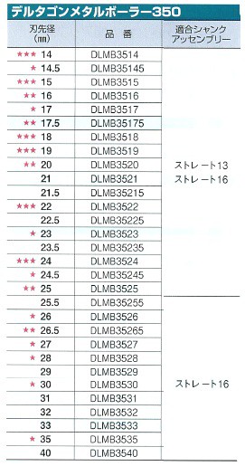 | 40mm:メタルボーラー350:DLMB3540 | ¥13,640(税込) | ¥6,620(税込) | 在庫あり |