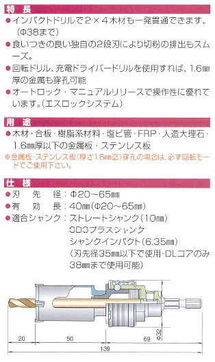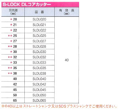 購入前のお見積書発行OK! 領収書発行・請求書事前発行のご用命も承ります "お問合せ"からお申込み下さい PROツール・ものづくりの総合商社 かんだ!TOP 切削機器・研磨機ミヤナガエスロックシリーズエスロック DLコア ミヤナガ エスロック DLコア SLDL 定価: ¥858(税込) ~ ¥15,950(税込) 価格: ¥410 (税込) ~ ¥7,750 (税込) [ポイント還元 4ポイント~] 販売期間: サイズ・品番: 選択してください ハイスセンタードリル:SLCD 20mm:カッターのみ:SLDL020 21mm:カッターのみ:SLDL021 22mm:カッターのみ:SLDL022 25mm:カッターのみ:SLDL025 27mm:カッターのみ:SLDL027 28mm:カッターのみ:SLDL028 30mm:カッターのみ:SLDL030 32mm:カッターのみ:SLDL032 33mm:カッターのみ:SLDL033 35mm:カッターのみ:SLDL035 38mm:カッターのみ:SLDL038 40mm:カッターのみ:SLDL040 42mm:カッターのみ:SLDL042 45mm:カッターのみ:SLDL045 50mm:カッターのみ:SLDL050 65mm:カッターのみ:SLDL065 ストレートシャンク:SLSK SDSプラスシャンク SLSKR シャンクインパクト SLSKJD 定価: - 価格: - 数量: 個 サイズ・品番定価価格在庫ハイスセンタードリル:SLCD¥858(税込)¥410(税込)在庫あり20mm:カッターのみ:SLDL020¥5,929(税込)¥2,880(税込)在庫あり21mm:カッターのみ:SLDL021¥5,929(税込)¥2,880(税込)在庫あり22mm:カッターのみ:SLDL022¥5,929(税込)¥2,880(税込)在庫あり25mm:カッターのみ:SLDL025¥5,929(税込)¥2,880(税込)在庫あり27mm:カッターのみ:SLDL027¥6,897(税込)¥3,350(税込)在庫あり28mm:カッターのみ:SLDL028¥6,897(税込)¥3,350(税込)在庫あり30mm:カッターのみ:SLDL030¥6,897(税込)¥3,350(税込)在庫あり32mm:カッターのみ:SLDL032¥8,316(税込)¥4,040(税込)在庫あり33mm:カッターのみ:SLDL033¥8,316(税込)¥4,040(税込)在庫あり35mm:カッターのみ:SLDL035¥8,316(税込)¥4,040(税込)在庫あり38mm:カッターのみ:SLDL038¥9,867(税込)¥4,790(税込)在庫あり40mm:カッターのみ:SLDL040¥10,098(税込)¥4,900(税込)在庫あり42mm:カッターのみ:SLDL042¥11,044(税込)¥5,360(税込)在庫あり45mm:カッターのみ:SLDL045¥11,044(税込)¥5,360(税込)在庫あり50mm:カッターのみ:SLDL050¥12,100(税込)¥5,870(税込)在庫あり65mm:カッターのみ:SLDL065¥15,950(税込)¥7,750(税込)在庫ありストレートシャンク:SLSK¥6,116(税込)¥2,970(税込)在庫ありSDSプラスシャンク SLSKR¥6,116(税込)¥2,970(税込)在庫ありシャンクインパクト SLSKJD¥6,303(税込)¥3,060(税込)在庫あり 返品についての詳細はこちら