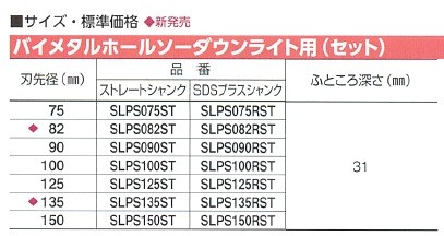 | 82mm:ストレートシャンク セット:SLPS082ST | ¥13,156(税込) | ¥6,390(税込) | 在庫あり |