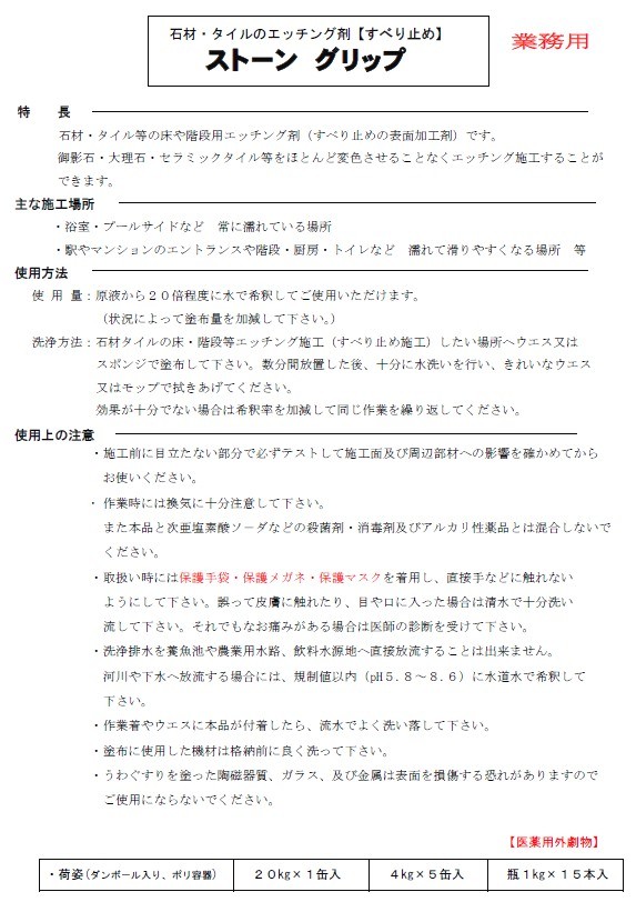 ケミスター産業 石材・タイルのエッチング剤 (すべり止め) ストーングリップ 【医薬用外劇物】