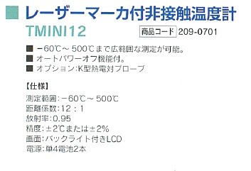 購入前のお見積書発行OK! 領収書発行・請求書事前発行のご用命も承ります "お問合せ"からお申込み下さい PROツール・ものづくりの総合商社 かんだ!TOP 測定・検査機器BBK テクノロジーズ温度計・温湿度計 BBK テクノロジーズ レーザーマーカ付非接触温度計 TMINI12 209-0701 定価: ¥41,800(税込) 価格: ¥31,240 (税込) [ポイント還元 312ポイント~] 販売期間: 数量: 個 在庫 在庫あり 返品についての詳細はこちら