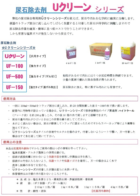 UF-500 ゲル状強力尿石除去剤【医薬用外劇物】
