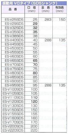 | 85mm:ES-V85SDS:SDSシャンク | ¥17,820(税込) | ¥8,890(税込) | 在庫あり |