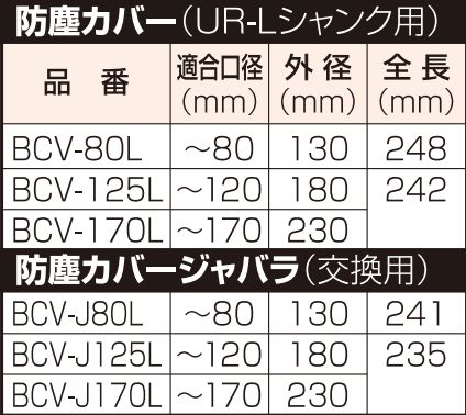| 防塵カバー 適合口径:~170mm:BCV-170L | ¥20,020(税込) | ¥10,080(税込) | 在庫あり |