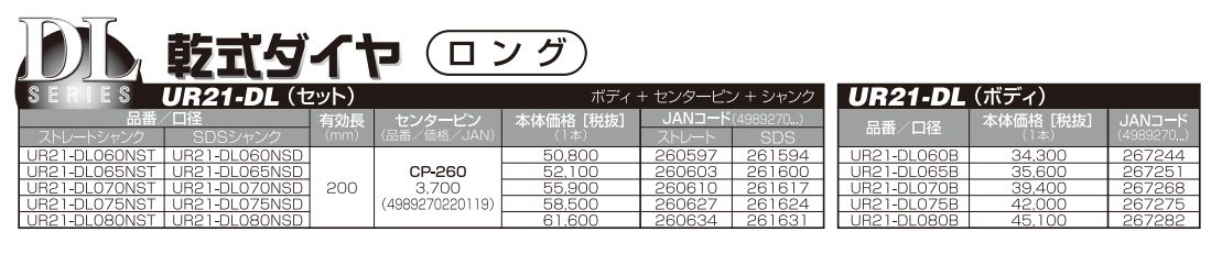 | 80mm:UR21-DL080NSD:SDSシャンク | ¥69,960(税込) | ¥35,250(税込) | 在庫あり |