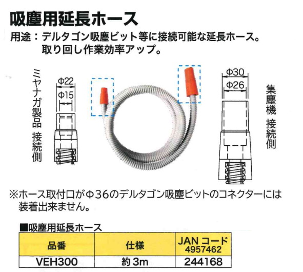 購入前のお見積書発行OK! 領収書発行・請求書事前発行のご用命も承ります "お問合せ"からお申込み下さい PROツール・ものづくりの総合商社 かんだ!TOP 切削機器・研磨機ミヤナガデルタゴン吸塵ビット ミヤナガ 集塵用延長ホース 3m VEH300 定価: ¥7,843(税込) 価格: ¥3,810 (税込) [ポイント還元 38ポイント~] 販売期間: 数量: 個 在庫 在庫あり 返品についての詳細はこちら